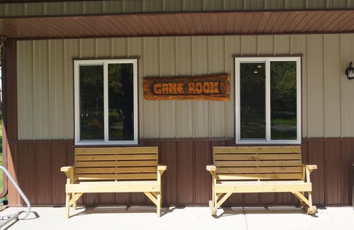 This home is is located on a resort property (Camp Holiday Resort & Campground). It is great for family reunions and large groups. It offers seven bedrooms, two living rooms, four bathrooms with two having Jacuzzi tubs, gas fireplace, large dining/living room area, DIRECTV, large deck, two charcoal grills, outdoor fire pit, central air and three season porch.