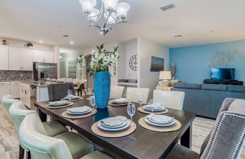 Storey Lake Resort Vacation Pool Home - includes resort clubhouse amenity access Our 6 bedroom 5 bathroom private vacation pool home is a great option for families wanting a home base to enjoy the best of all that Central Florida has to offer Storey Lake Resort Private Pool Home Sleeps up to 15 6 bedrooms 5 bathrooms Private Pool with Spa - Southwest Facing Game Room including Ping Pong and Foosball Storey Lake Resort Gated Community 5 miles to Disney World property Fully equipped Kitchen with seating for 6 at the dining room table with 4 additional spots at the breakfast counterBEDROOMS First Floor - Bedroom 6 - One Queen Bed BEDROOMS Second Floor - Master Suite 1 - One King Bed Attached Bathroom - Master Suite 2 - One King Bed Attached Bathroom - Bedroom 3 - One Twin Bed and One Double Bed - Bedroom 4 - One Twin Bed and One Double Bed - Bedroom 5 - One Twin Bed and One Double Bed A pack n play is available for use as well Pool Spa Charges and Information There is an additional optional charge of 30 per day plus tax to heat the pool spa The spa will not heat up if the pool heater is not on Please note that our pools are serviced on a weekly basis Resort Parking Rules The resort allows a maximum of 3 cars Each car must be in a parking spot or in a driveway All driving guests must be registered Storey Lake Resort Amenity Access Included with Rental We are pleased to offer two clubhouses at Storey Lake Resort- this property is located closest to the Hideaway ClubhouseIt is a 1-minute drive or 4-minute walk to the Hideaway clubhouse from this property address Huge resort-style pool Relaxing windy lazy river 2 massive water slides Interactive children s splash park State-of-the-art fitness center Full-service tiki bar Kayak rentals 9-hole mini-golf course Sand volleyball courts Ice cream parlor Distances from Resort to Shopping Attractions Walt Disney World - 5 miles Universal Studios - 13 miles SeaWorld - 9 miles Orlando Airport - 22 miles Atlantic Coast Beaches - 70 miles Gulf Coast Beaches - 95 miles Publix Supermarket - 6 miles Walmart - 2 miles Target - 1 mile Dining - 1 mileWhy Choose this Rental Professionally managed to serve all your needs Management company has over 26 years of experience hosting well over 200 000 families Go straight to your rental with online email check-in 24 7 on-call maintenance No Resort Fees Free On-Site Parking Smoke-free and pet-free for your comfort Towels and linens are provided Complimentary WiFi Additional Rental items Available e g 3 4 burner BBQs cribs pack-n-plays strollers high chairs etc Our starter welcome packet supplies 2 rolls toilet paper per bathroom 2 round hotel-size bar soap per bathroom 1 hotel-size shampoo conditioner per full bathroom 1 roll paper towel 1 packet dishwasher detergent 2 trash bags size-13-gallon 1 small box laundry detergent enough for one load Garbage can liners in each bedroom bathroom small garbage cansAny supplies beyond this are up to the guest to replenish we do not restock these items No salt pepper or cleaning supplies are stocked due to safety issues This is an industry-standard practice FOR GUESTS WHO BOOK 30 NIGHTS OR LONGER STAYS this does not apply if you are staying less than 30 nights We will collect a 1 500 deposit Balance is due 60 days prior to arrivalIf canceled 90 days or more before arrival we keep with us 250 00 1 250 00 will be refunded If canceled between 61 and 89 days prior to arrival we keep with us the 1 500 00 deposit No cancellation or modification 60 days or less prior to arrival