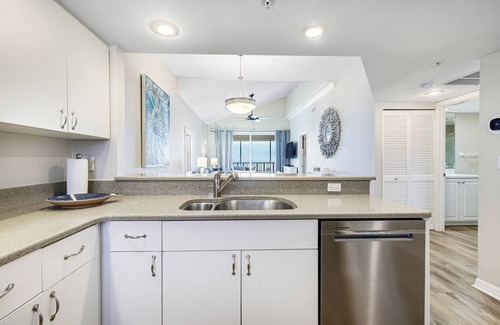 A fully equipped kitchen and dining room allow guests to dine in the condo with comfort. With a king in the primary suite, 2 twin beds in the guest room and a sleeper sofa the living room this unit can comfortably accommodate up to 6 guests. The owner has equipped the unit with 3 smart TV's, 2 DVD players, high speed Wi-Fi, 2 beach chairs, 1 beach umbrella & 4 beach towels for your convenience.