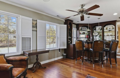 There is something for everyone at Bayberry Cove! Fish, crab, and swim from the floating dock, explore shimmering Fishing Creek on paddleboard, kayak, canoe, or maybe hike and birdwatch at nearby Blackwater Preserve. Barbecue in the full outdoor kitchen and splash in the waterside pool and separate hot tub. Children of all ages will enjoy the spacious two-garage bay game room equipped with two-shot basketball and fooze ball table. Play bocce, badminton, croquet, and horseshoes on the front lawn. Take a quick drive to great shopping, restaurants, and nationally renowned historical sites. End the day’s adventures sipping wine at the breezy dock and roasting smores round the firepit. Immerse yourself in the natural beauty that surrounds you, then return indoors to all the comforts and conveniences of a wonderfully updated and welcoming home.