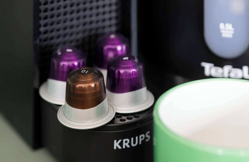 Induction hob, oven, dishwasher, microwave, refrigerator, freezer, toaster, electric kettle, capsule coffee machine, steam extractor, set of dishes and kitchen utensils, dining table with chairs, built-in washing machine