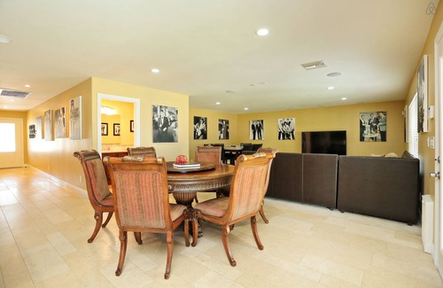 A 4,500 sq foot 6 bed 4 1/2bath house with a detached gaming room - pool table, bar shuffleboard, Darts, etc... 12 min cab ride from the strip. All Sinatra & Elvis themed. 7 LCD TV's w/Premium with Amazon Fire Sticks in each bedroom and living room.