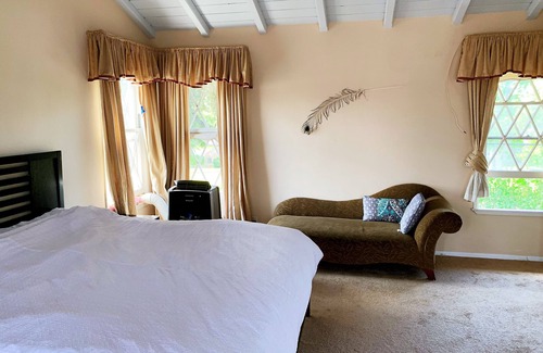 We are nice family located in peacock garden in Arcadia, we listed our huge master bedroom for people are visiting here.There are many wild peacocks come to our house, the location is really nice, you can walk to