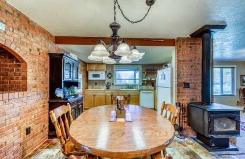 Freshly remodeled and loaded with amenities, this Cascade vacation home will treat you to lake views, a convenient wood stove, and a full, modern kitchen. All on one level, this ranch-style home is a wonderful and comfortable home base for exploring gorgeous western Idaho. Complete with a wood-burning stove and comfortable furnishings in the living room, your whole group will feel right at home here. There's a TV, DVD player, and a collection of board games for an entertaining evening. Fix a meal in the updated kitchen or fire up the gas grill for some steaks with a view. Outside, you'll also have a fire pit so be sure to save some room after dinner for s’mores. When it's time to turn in, you'll have three bedrooms - room enough for seven guests, with two queen beds, a full, and a twin. Extra amenities here include a washer and dryer, as well as a pack & play, and high chair for vacationers traveling with small children. Have a boat? Bring it along! It is possible to fit a boat and trailer in the driveway, along with two cars.