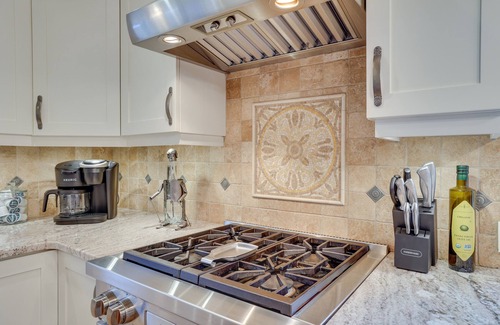 CHEF’S KITCHEN: Dishwasher, duo drip/pod coffee maker, blender, slow cooker, toaster, toaster oven, Sub-Zero fridge, stove, Wolf range oven, microwave, dishware/flatware, trash bags/paper towels, cooking basics, complimentary coffee & tea, spices
