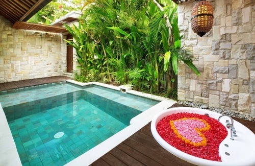 This villa is a romantic villa resort located in Seminyak, Bali designed for honeymooners and couples. The resort features one bedroom villas with private pools and bathtubs, and offers signature villa facilities and services.