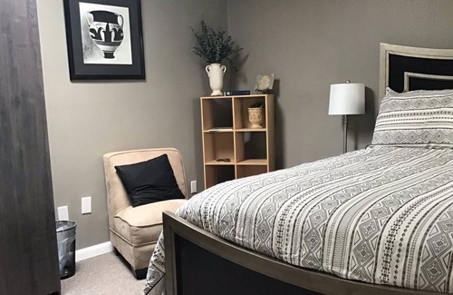 The Portico is a New Mexico experience, nestled in a safe, quiet neighborhood conveniently located near shopping centers, parks, restaurants and quick access to main streets and I40 highway. As you enter the spacious Portico you are greeted by the welcoming cozy atmosphere, boasting a fully equipped chef’s kitchen 2 dining areas with a 11 piece dining set and another 7 piece dining table. Extra tables and chairs available upon request. There's a laundry room with washer and dryer. Further in, you come into the Santuario with a sofa sleeper, and oversized comfortable sofas. The Santuario can comfortably accommodate game nights, and family time. 7 bedrooms with a combination of kings ,queen, fulls, twins, sofa sleepers, rollaways can sleep 20+. The Albuquerque Suite has a king bed, full over full bunkbed, a sectional, and sofa sleeper and a jetted oversized bathtub. The Route 66 has 3 twins plus a twin over full bunkbed. The Rio Grande has a full bed. The Cactus Rest area has a plush queen bed. The Taos room has a memory gel Queen. The Santa Fe Suite has a king pillow top, an oversized sectional and a twin over twin bunkbed. The Cuarto Cielo Azul has a full bed and 1 queen bed. There's a sofa sleeper and 2 rollaways available. The Portico has 4 full bathrooms with showers plus a jetted tub. The backyard includes a grill for propane and charcoal use, patio sets