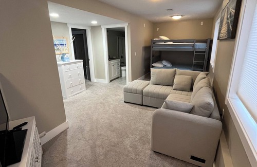 Discover this tremendous 6-bedroom gem in Manistee. You’ll get two houses in one at this Duplex! each side features 3 bedrooms with a master king bedroom upstairs, a queen en-suite on the lower level, and a second queen with an additional twin bed. There are additional bunk beds on each side in the lower level flex space, so you can bring the whole family!