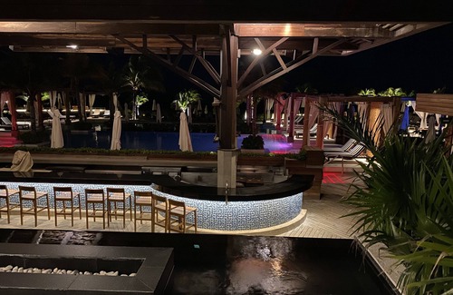 Grand Mayan suite, 2 bedrooms, 2 bathrooms and tundra couch, sleeps 6 adults and 2 kids under 12. Has a kitchen, dining table, living room, 3 tv's and terrace with table and chairs and a private plunge pool . This Vidanta resort at Riviera Maya has a jungle like atmosphere and is unique and breath taking. There are plants, trees, flowers all along the wooden walking paths that lead you every where within the resort. You can walk or take a ride in the open shuttle service vehicles to get from place to place within the resort. There is over 1,000 acres with beaches, pools, swim up bars, lazy river, gulf course, restaurants, shops and a grocery store. There is a waterpark with slides, one being a drop slide, gyms, spas and live entertainment throughout the resort. There are activities at the pools that include games, dancing, exercising and kid activities. Near is The Cirque Du Soleil theater with a three course dinner if you choose.