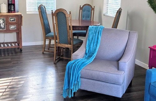 The Little Blue House is a comfortable, fully furnished home with three bedrooms and two full baths. Upon arrival, you will find ample parking, a well-lit, welcoming front porch, and easy self-check-in with your personalized digital lock code.