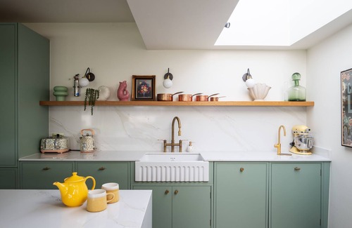 Most importantly, the ground floor has a dedicated guest room (which can be set-up as either two singles or a super king) and en-suite for wheelchair users, or those less mobile. The en-suite shower room with beautiful deep green tiling has a dedicated built in heated seating in the shower, with brass grab & hinge rails. The whole of the ground floor of the house is wheel chair accessible friendly with no stairs or steps into the house or out into the garden.