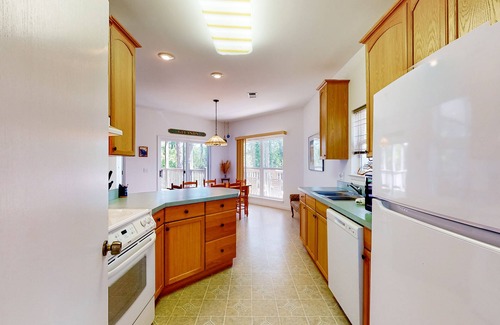Unwind outdoors on the expansive private deck — a peaceful perch for your morning coffee or evening glass of wine. After a day in the sun, rinse off in the enclosed outdoor shower, then fire up the charcoal grill for classic cookouts under the stars. Additional modern conveniences include a 50-amp electric vehicle charging outlet, in-unit washer and dryer, and covered parking — everything you need for a worry-free stay.