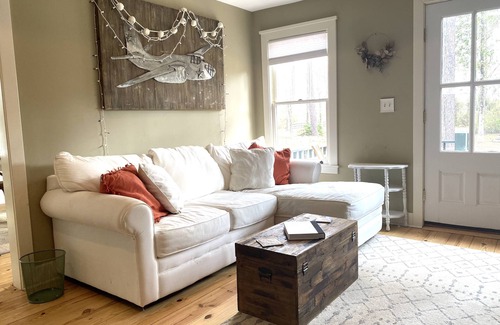 Bright, airy cottage with 3 bedrooms and 2.5 baths. Nestled in the woods of Foley, AL, where you will have privacy close to all the attractions of Foley, Gulf Shores and Orange Beach. The primary suite is on the opposite end of house with complete privacy from other bedrooms. Air mattress available for setup in a private room. Two separate living rooms with televisions. Smart home equipped with music available to play throughout the house. Outdoor surveillance cameras cover the property. Jacuzzi tub in master bathroom with walk-in shower. Child swingset on property.