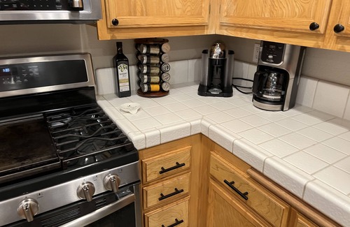 - Newer pot and pan set, tons of cooking utensils, oils,