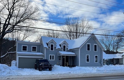 Snownook is conveniently located on Main Street in Ludlow, VT. We are directly across from the Sports Odyssey ski store, making it easy to rent your ski equipment. Don't want to drive to the mountain? The Okemo mountain shuttle stop is conveniently located across the street as well. One mile from the base of Okemo with views from the bedrooms and reading nook, our chalet has a fully stocked kitchen, smart streaming TVs, two master-sized bedrooms, and a bunk room. Large deck and cozy gas fire!