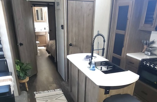 Welcome to SO "Time to Wander"! This family and pet friendly beach retreat is beautifully decorated and fully stocked with everything you will need to explore the 3 beautiful beaches that are within minutes of here! We are within minutes to Sanibel and Fort Myers Beach. Bunche Beach is a mile away and provides beautiful sunsets! This 5th Wheel Camper is VERY spacious and comfortable. We provide everything you need for a day at the beach! This fifth wheel has a large living room in the front, a FULL kitchen with a propane stove and residential sized refrigerator. The master bedroom has an King bed and a master bathroom with double sinks and a washer and dryer. The outdoor space has a screened gazebo for dining and enjoying your morning coffee, The 5th wheel RV and nice outdoor space We prefer messages through the AirBnB app. We will also provide our phone numbers, so you can contact us that way if needed. This neighborhood is quiet and quaint.