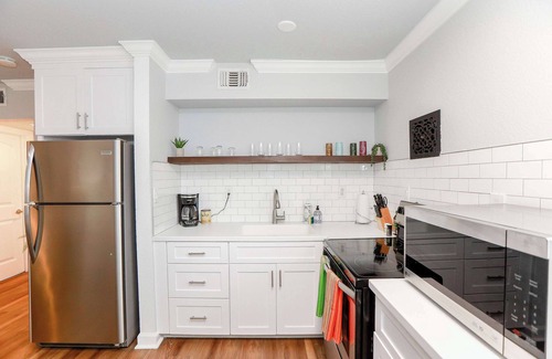 Step into vacation mode every day in this bright and breezy 2-bedroom, 2-bath beachside apartment. Filled with natural light and thoughtfully styled with coastal décor, the space offers a calming retreat just steps from the shore. Each bedroom features a queen-size bed with plush, hotel-quality linens for a restful night’s sleep, while the newly updated bathrooms come stocked with essential toiletries and hair dryers. Start your mornings with coffee in the fully equipped kitchen and end your evenings soaking in the ocean breeze at sunset. Beach chairs are included for your convenience—just bring your flip-flops.