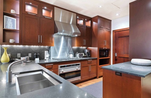 Set within the most exclusive resort in Vail Village - Solaris - this mountain-contemporary, fifth-floor residence offers a great room with a stone-clad gas fireplace, a chef’s kitchen with Wolf and Sub-Zero appliances, including a wine refrigerator and gas range, as well as a dining table for eight. Additional features include two guest suites, each with a luxe, attached bathroom (one has a king size bed, the second has two queen size beds), a den with a queen bed and a double bunk, stacked washer and dryer, Frette linens, Creston home automation, and two ski lockers at the Gorsuch Ski Café at the base of Gondola One. This residence is 1,730 sq/ft.