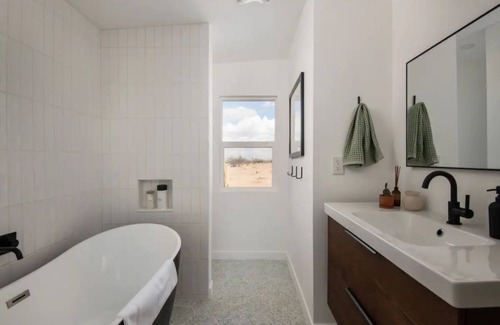 Based on the information received from our partner, the Wonder Valley house has not specified they are wheelchair accessible. Likewise, there is not an elevator specified as being available at the property. Specific accessibility details may be addressed in the property details section of this page.