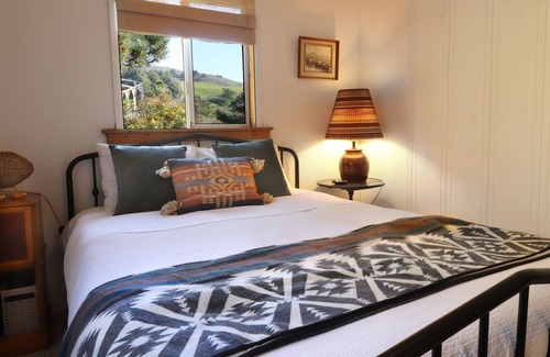 'Sonoma Coast River Retreat' vacation home offers a full bath and 2 bedrooms, one with a queen and the other with (2) twins on the main level.