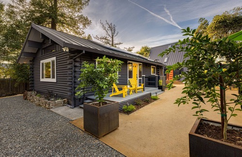 Serene and relaxing setting in the beautiful Sonoma Springs area. Close to many great eateries and award winning wineries. Real log cabin with vaulted ceilings and modern amenities, including air conditioning and EV car charging. Cozy up to the wood burning stove and enjoy the peacefulness. The property features an outdoor BBQ kitchen with 12-person dining/ping pong table plus heated swimming pool, bocce court, fire pit, hammocks and bikes. Take a dip in the modern container pool with giant window and Baja ledge. Several outdoor seating areas and hammocks. The tranquil setting is accessed through a private gated entrance that provides ample parking for 2+ cars. The seasonal creek adds serenity for your peaceful getaway. Fresh herbs and fruit trees available throughout the property. All within walking distance to many great locals eateries, including El Molino Central, Sonoma Eats, Spread Kitchen, Barking Dog Coffee, Cielito and the Fairmont Sonoma Mission Inn. Fairmont which offers great outdoor entertainment with live music and excellent food is only 1/2 mile away! Easy access to Sonoma Valley bike trail. 2-miles to Sonoma Plaza and 5-miles to Glen Ellen. You are in the heart of Sonoma Valley! Access can also be arranged for the golf enthusiasts at Sonoma Golf Club! (A-frame & entire property is available to rent also.)