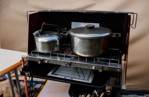 There is an outside camp kitchen that guests can use with a basic outside camping style washing up facility close to the tent. Tea, pots, pans, kettle, cutlery and crockery etc are provided.