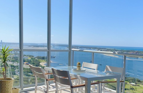 The apartment is located on the 26th floor and has beautiful ocean and Broadwater views that you can't forget. Relax on the balcony and watch the world go by as boats cruise by and helicopters soar high. During your stay you'll be able enjoy the natural beauty of the Gold Coast from your balcony and might be even lucky enough to spot a whale in the horizon as they migrate.