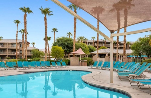 Escape to this delightful 2-bedroom in Indio. Unwind in the peaceful living room with a cozy murphy bed. Guests can enjoy the excellent amenities like WiFi, a fitness room, and a washing machine. The bedrooms offer a king bed and a twin bed for a restful night's sleep. With 2 bathrooms featuring showers and hair dryers, your stay will be convenient and comfortable. Experience what Indio has to offer with a stay.