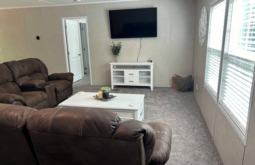 Escape to tranquility with the whole family at Springlake Ranch, a retreat nestled on 5 acres. This brand-new home offers 4 bedrooms and 2 baths, providing ample space for up to 8 guests.