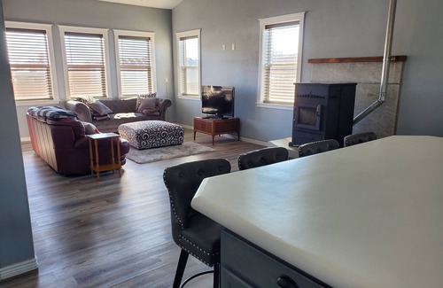 Discover the beauty of Council from this 4-bedroom house. With a full bed, queen bed, dual bunk bed with twin and full beds and king bed, there's plenty of space for guests. Enjoy amenities like WiFi, AC, and a washer & dryer. Extra large island. Perfect for family gatherings.Relax in the bathtub or shower in the 2 bathrooms. A living room with an extra twin bed cot provides additional bed if needed. With a grocery store 1/2 a mile away and multiple resturants and bars within walking distance. Enjoy a slower, simpler time where walking hand in hand togwther or letting your kids walk to store for some candy and a pop. Our lil town is welcoming and always has something going on from high school sports, to farmers markets, to rodeos and good old fashion fishing & hunting seasons!!