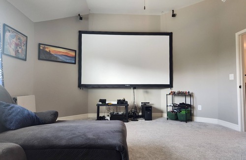 This memorable house is the perfect home base for your trip to Evans. With 5 bedrooms including 2 queen beds, 1 king bed, 2 twin beds, and 1 full bed, this adorable property offers plenty of space for guests to unwind. Relax while watching TV on a large screen or a projector or head outback to sit next to the firepit. Prefer to work out? You won't be disappointed with the in-home gym which includes a bowflex spin bike, a full smith machine with 300lbs of free weights, and other work out equipment. The 4.5 bathrooms come equipped with amenities like a hairdryer, bidet, shower, and bathtub. Kickback, relax, and enjoy everything Evans and our house has to offer. Each room has it's own sink and mirror. Three rooms have a private full bathroom while the other two share the shower/tub and toilet. Neighborhood pool is right around the corner, about a 1 minute walk from our front door.