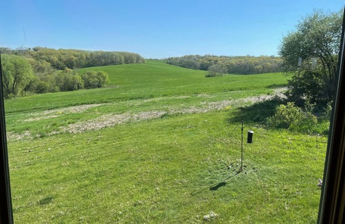 Rural Verona is waiting for you at this superb 5-bedroom fully equipped country home surrounded by verdant hills, trees, alfalfa fields and majestic vistas in all directions. Adjacent to the 800 acres of the Sugar River Wildlife Area and the 300 acres of the Madison School Forest the wildlife is abundant with regular viewing of deer, turkey, geese, cranes and songbirds. Hiking, biking, canoeing nearby. Epic and downtown Verona 5 minutes away and Madison just 15 minutes, Dane County airport 30 minutes. Sleeps up to 8 with 1 king bed, 4 queen beds, 1 twin bed, and a futon this marvelous property offers plenty of space for guests. The 3 bathrooms, each with bathtub and shower, ensure everyone stays comfortable. The modern kitchen with maple cabinets and granite counter tops is fully equipped, dining room has a round table seating 8 and living room plus outdoor deck provides the perfect gathering space for family or friend gatherings. A great place to call home base while you're away. We hope you enjoy your stay. Two night minimum and discounts for week and longer. Family friendly. Please no pets, no smoking. Property owned and managed by retired University of Wisconsin College of Agriculture and Life Sciences professor.