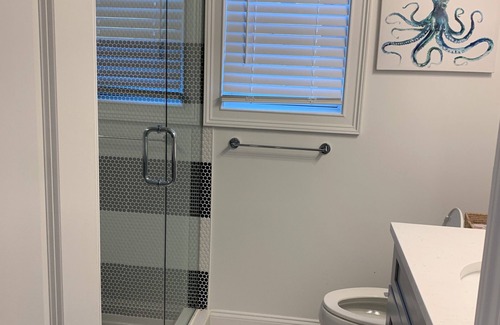 This Lavallette house boasts 5 inviting bedrooms and 3 full bathrooms. 3BRs are on the second level (including the master suite), each with a queen bed. 2 of the 3 BRs on this level have a TV. The street level room features a full bed, a queen-sized sleeper sofa and TV. The attic room includes 4 twin-sized beds and a roof deck with ocean views. All 3 full bathrooms are equipped with showers. Guests can also enjoy the deck off the kitchen, which has a retractable awning. House comes equipped with beach chairs and a pop up cabana, as well as a natural gas grill. Come experience what Lavallette has to offer with a stay at our marvelous house.