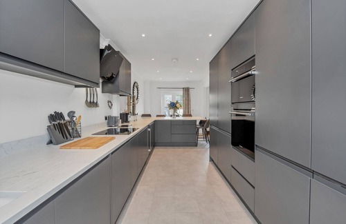 Located just 2.8 miles from the historic town of Bury St Edmunds, this detached 3-storey home offers a perfect base for your Suffolk escape. With 5 comfortable bedrooms (1 king, 1 queen, 3 doubles, and 2 child beds) and 4 bathrooms, it accommodates families or groups with ease. Enjoy modern comforts including a fully equipped kitchen with oven and dishwasher, free WiFi, flat-screen TV, and excellent heating throughout.