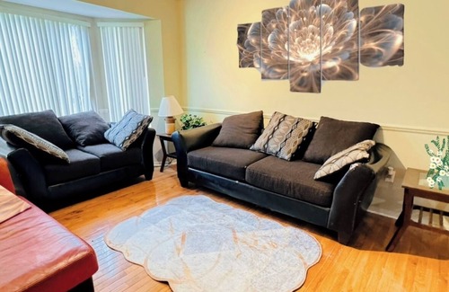 In a tranquil neighborhood, this spacious home has 5 bedrooms, 2.5 bathrooms, a finished basement, and a lovely yard. Nearby, guests find easy access to grocery stores, banks, restaurants, and a movie theater. Only 6 miles from Michigan Stadium, downtown Ann Arbor, UM campus, and hospital. On-site amenities include a pool table, grill, washer/dryer, and exercise machines. Basic kitchen utensils are provided. Parking is ample and free. Smoking and parties are strictly prohibited.