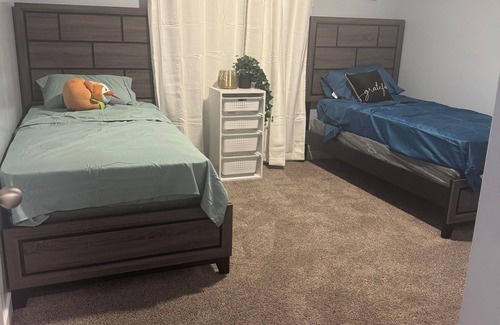 Magna is waiting for you at this 6-bedroom house. Step inside this cool and gorgeous retreat featuring a mix of twin, king, full, and queen beds. With 4 bathrooms equipped with hair dryers, you'll feel right at home. Enjoy the AC, heating, and even a fitness room during your stay. We look forward to welcoming you to our place.