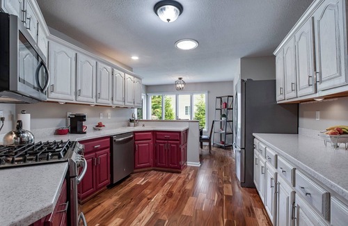 Discover the charm of East Tennessee with a stay at our Spacious and Stunning Tellico Village Home. This property boasts vaulted ceilings, a vast covered deck for relaxation, and an abundance of natural light throughout its contemporary layout. The kitchen is a chef's dream with stainless appliances and a GAS range. Entertain or unwind in the lower level, featuring a wet bar and sleek polished concrete floors. With 4 bedrooms, 4 bathrooms, essentials, and modern amenities like WiFi and air conditioning, your East Tennessee escape awaits in this remarkable home.