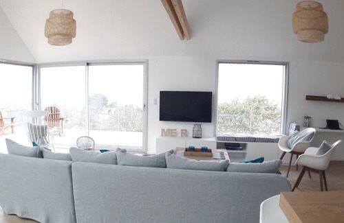 Ty Far is a new house of 160 m² on 3 levels including 1 wooden frame. The living room is large and bright, you will feel good and the cozy atmosphere will charm you. You will appreciate the originality of this atypical holiday home and its ideal location close to the sea and the city center.