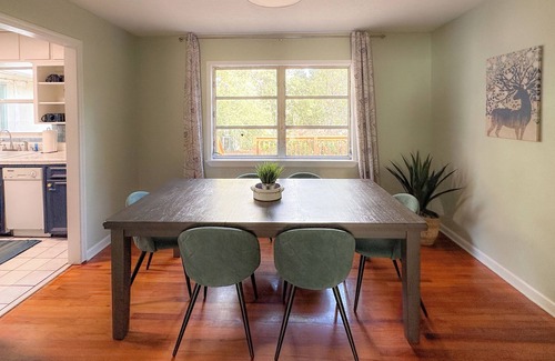 This is an adorable well-maintained 1950’s bungalow with loads of character. The bathrooms and kitchens have been renovated, and the home has its original gorgeous hardwood floors throughout. Spacious bedrooms, two living rooms, an office, a dining room that seats 8, there's plenty of room for a large group to spread out! The back deck is a nice place to enjoy morning coffee or unwind as it overlooks the beautiful private backyard. There's fast WiFi, board games and three large smart TVs.