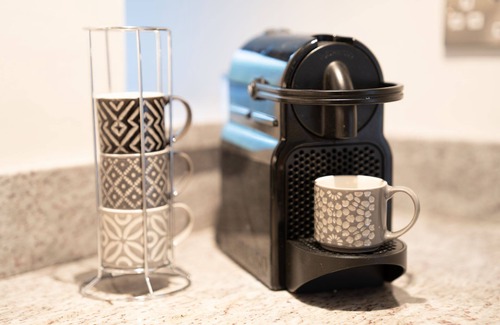 The Kitchen is located on the lower ground floor with an inframe style kitchen, quartz worktops and everything you need to prepare a light breakfast or gourmet meal. There is a cute terrace off the kitchen with direct views to the gorge below.