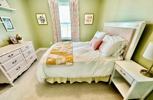 Upstairs, you will find 4 additional bedrooms. One room with two twin beds, one with a double bed, and one with a crib (and queen bed available upon request) attached to Jack and Jill full bathroom. Lastly, the primary bedroom features a retreat-like California King bed and spa bathroom. There is also a loft area for watching movies or exercising.