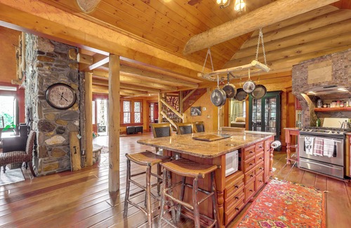 A unique retreat awaits at this stunning Suches vacation rental! Families and friends will love this spacious home, with 3 bedrooms, 3 en-suite bathrooms, a covered patio, and custom stone touches inside and out. Explore the Chattahoochee Forest by hiking the Appalachian Trail, then sample the wines at Wolf Mountain Vineyards before returning to soak in the mountain and lake views.