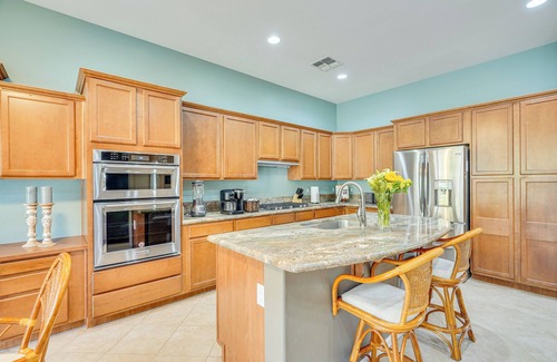 Find your ideal balance of recreation and relaxation at this Tucson vacation rental! Located in the vibrant SaddleBrooke community, this 3-bedroom, 2.5-bath home makes it easy to stay active and enjoy sunny days. Take advantage of amenities, like outdoor pools, hot tubs, and pickleball courts, before retreating inside to watch TV in the recliners. In the evenings, prepare a cocktail at the bar and sip it on the private patio. Your next desert escape awaits!