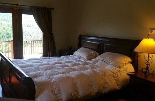 4wd is needed in the winter to navigate steep windy drive. Wonderful home for family and friends to get together and enjoy the beautiful surroundings of a private hillside chalet on 20 acres. Loaded with amenities to make your stay pleasant and enjoyable. This four bedroom house boasts a beautiful master suite on the first floor with the other three bedrooms upstairs. Easy access is gained through the rear of the house with only a two step entry into the house. There is a very kid friendly play room downstairs along with a nicely equiped gym. The large theatre room to enjoy your favorite movies (some provided in house). The granite kitchen is beautifuly appointed with quality appliances along with the essentials of dishes, cooking pots and pans, and silverware. There is a BBQ grill outside the kitchen door for your convenience. Enjoy the beautiful surrounding hillside vistas along with stunning sunsets from the living room or the surrounding deck. There are over 20 acres for you to enjoy along with a playhouse and sandbox.
