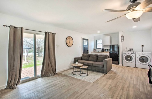 Nestled on Lake Palestine, this 4-bed, 3.5-bath Frankston vacation rental features 3 Smart TVs, a fully equipped kitchen, a separate guest studio, and an impressive outdoor area fit for the whole family. Sip your morning coffee from the deck, then kayak to Caniboo Island or tee off at a nearby course! End each day winding down with a game of poker in the furnished barn or roasting s’mores over the fire pit.
