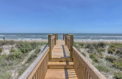 Nestled on the pristine shores of North Topsail, our oceanfront haven welcomes you to an unparalleled experience. Our spacious home is designed to embrace the beauty of the sea and create unforgettable moments for you, your friends, and family. Each window frames a breathtaking view of the beautiful sea. Our private beach access allows you to embrace the coastal rhythm and the refreshing private pool and spa offer a perfect oasis for relaxation and aquatic enjoyment! Can accomodate 30 guests !
