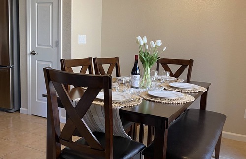 This home is the ideal venue for a comfortable stay in Reno, leaving you the option to stay in and cook with the fully stocked kitchen. It provides the perfect space to create your favorite home-cooked meals and yet have easy access to visit with those in the living room and dining area. There are coffee beans and grinder available for drip coffee, as well as a Keurig with a variety of pods.
