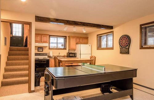 The lower level features a second kitchen and living room/rec room, complete with a dome hockey game table. The outdoor hot tub, located on the deck with stunning views of the ski slope, is available year-round. You can also enjoy an outdoor sound system while grilling on the gas grill.