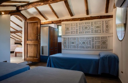 The villa can accommodate up to 13 guests + 2 babies (13 in regular beds plus 2 cots)