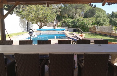 This villa has plenty of space. It has an extra (2nd) kitchen on the ground floor. It has dining capacity up to 12 people inside as well outside around the swimming pool. It has 3 laundry machines and an additional laundry room. Downstairs it has a meeting room with pool table. It has super fast (fiber) internet and two televisions with channels from all over the world. It has two separate gardens, one around the swimmong pool and one separately with enough space for children to play. There are at least 10 chairs for sun bathing.